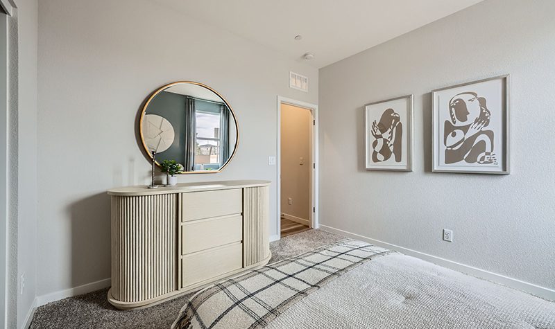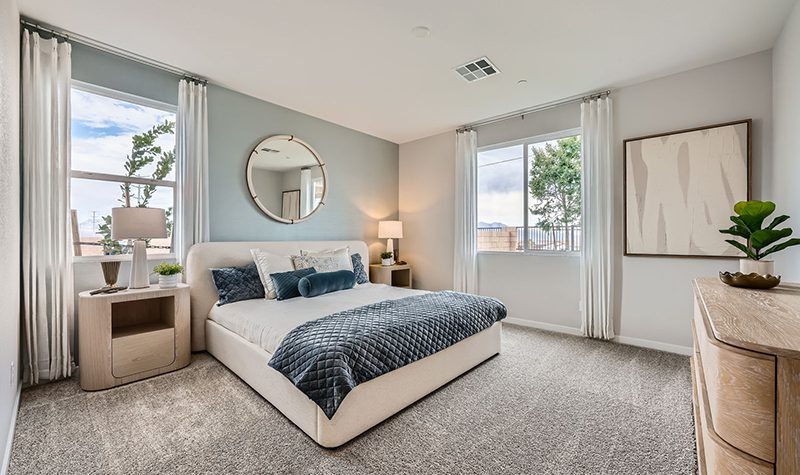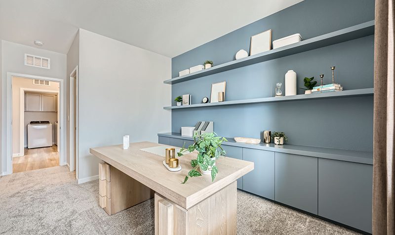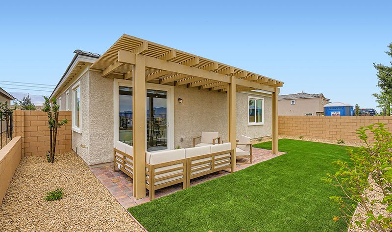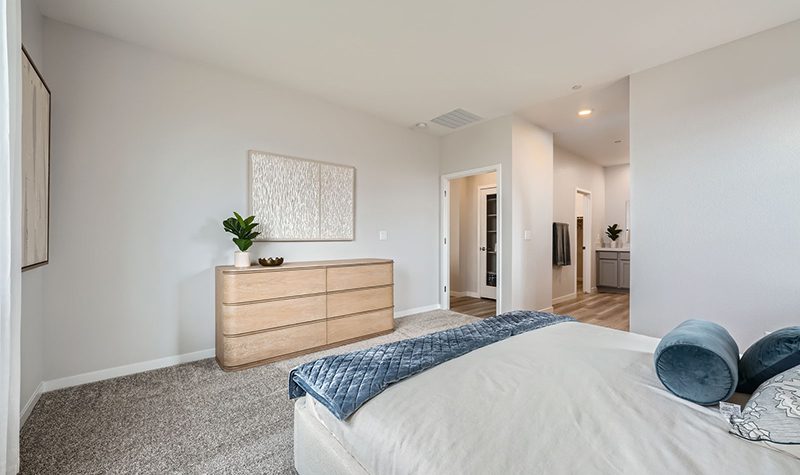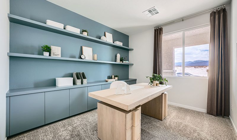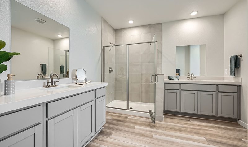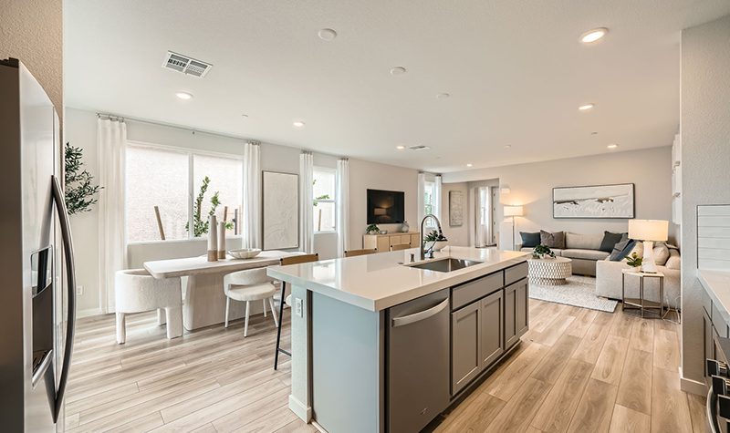 The elegant one-story Residence 1742 plan at Mesa at Skyeview offers inspired space, designed to suit your daily living and entertaining needs. Upon entering the home from an ample front porch, you’ll find a two secondary bedrooms, a hall bathroom and a convenient laundry room. In the heart of the home, a wide-open great room overlooks the well-appointed kitchen—boasting a generous center island and a charming breakfast nook. Nestled in the back corner of the home is the private primary suite—showcasing a sizable walk-in closet and a bathroom with a walk-in shower and separate vanities.